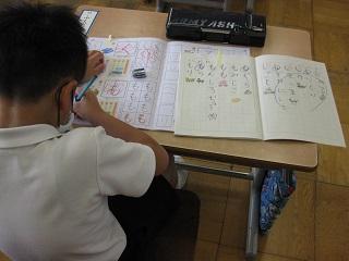 1年生のひらがなの学習です。アサガオもどんどん大きくなっています。