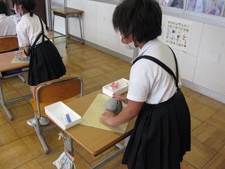 書写では、3年生から毛筆の授業がが始まります。初めての毛筆の授業の様子です。筆をたてて上手に書いていました。授業では、終わった後の筆など道具の片付け方も習います。図工では粘土を使った学習をしていました。何ができあがるのか楽しみです。