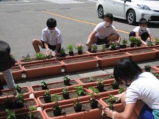 6月11日(木)6年生が花の苗を植えました