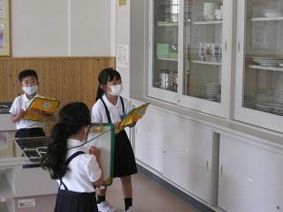 1年生は生活科の授業で学校探検を行っています。理科室や家庭室はどんな部屋なのか、どんなものがあるのかなどを調べているところです。来週、2年生は1年生に学校のことを詳しく紹介します。2年生はそのリハーサルを行っていました。