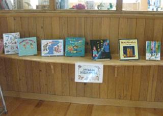 昼休みの図書館。金曜日は3冊借りることができます。七夕にちなんだ本が紹介されています。