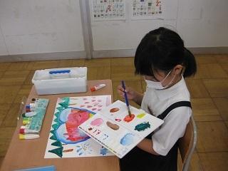 2年生は絵の具を使って、自分なりの「えのぐじま」を描いています。
