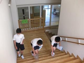 今日は午後から3~6年生でプール掃除をしました。3年生はプールサイド、4年生は小さいプール、5・6年生は大きなプールと分担して掃除をしました。隣の人と間隔をとって、プールを磨きました。一生懸命に掃除をする姿は大変立派でした。ありがとう。1・2年生も掃除の様子を見に来ました。そして、きれいにしてくれたことに「ありがとうございます。」と感謝の気持ちを伝えました。