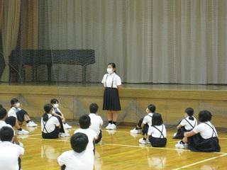 今年度最初の鳥越っ子集会を行いました。今回は各委員会から目標や活動内容についての発表を行いました。委員会に所属している5・6年生のめあては「聞く人を見て伝える」、1~4年生のめあては「話す人を見て聞く」でした。5・6年生の委員会発表では、めあて通り下級生の方を見て、聞く人に伝わる声ではっきりと伝えることができました。また下級生も話す人を見て集中して聞くことができました。ふり返りのときも発表する人の方にその都度体を向けて聞いていました。