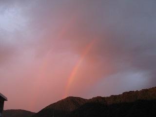 今日の夕方、職員室から見える空に二重の虹がかかっていました。