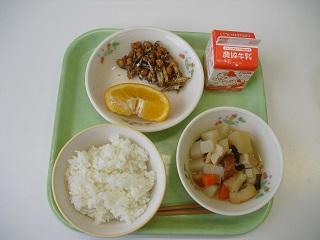今日の給食は、大豆と小魚の揚げ煮、みそおでん、いよかんでした。いよかんは日本原産の果物で、明治時代に発見され、古くから食べられてきました。生産量の90%が愛媛県で生産されており、1月から2月が旬です。今日もおいしくいただきました。