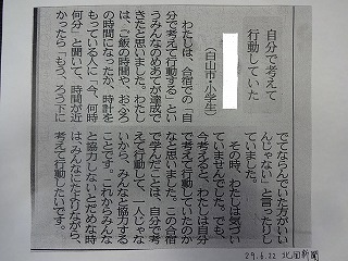 新聞に投稿したところ、6年生の作文(第2号)が掲載されました。