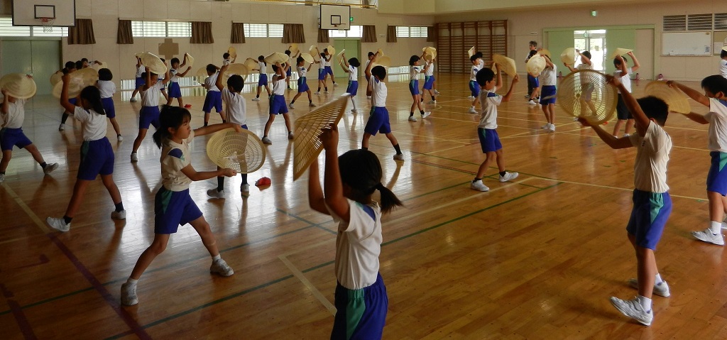 初めて踊る1年生も少なくなく、戸惑っている様子でした。でも、そこはさすが6年生。横について声を掛けたりお手本を見せたりしながら、最後にはみんなが踊れるようにしてくれました。