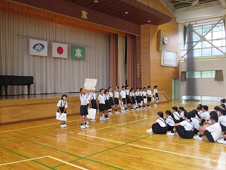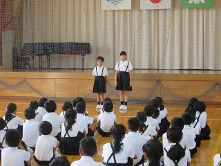 鳥越っ子集会で、後期委員会紹介を行いました。