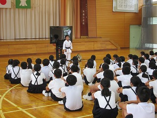 3年生は、はつらつ集会で、『日常生活に必要な記号』について