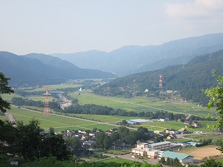 真ん中には、霊峰白山、隣には、鳥越城、五十谷の大杉と