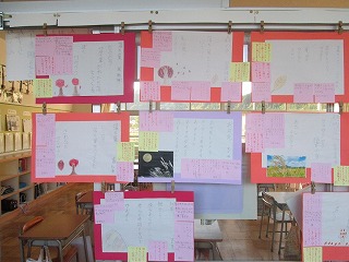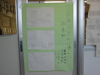 玄関での掲示もその1つですが、そこに、5年生児童自作の