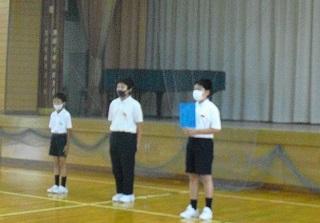 生活委員会。7月の生活目標「暑さに負けず学習に集中しよう」の達成に向けて、体調管理などの呼びかけをしていくことを伝えました。