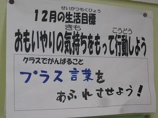 今月の生活目標です。学校全体の目標とクラスの目標を決めています。