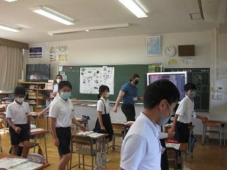 ALTの先生を道案内しています。