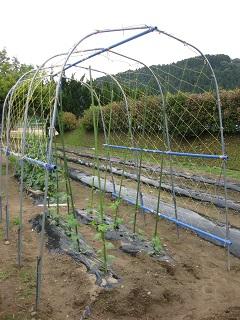 4年生は理科の授業で、プール横の畑に「きゅうり」と「へちま」を栽培し、観察しています。棚は校務士さんが作ってくれました。ありがとうございました。