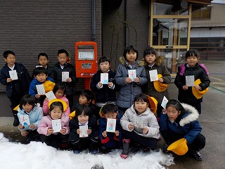 1年生が年賀状を書いて、ポストに投函しました。