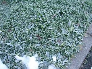 今朝はとても冷え込みました。前庭も霜で真っ白でした。