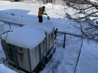 明日からの気温の上昇に期待して、受水槽上部の雪を下ろしました。