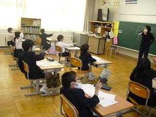 1年生の国語の授業。「さ」のつく言葉をたくさん出していました。次に「さ」の書き方を学習していました。