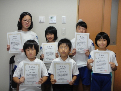 個人情報保護の関係で氏名は出しません。賞状は、校長室前に表彰状を展示してありますので、ご来校の際には、ご覧になってください。