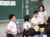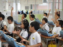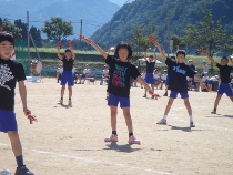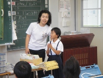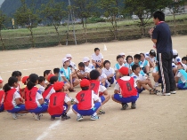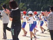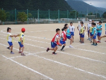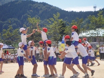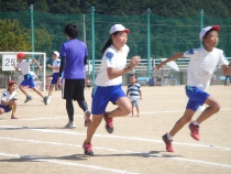 毎日、昼休みにはリレーの練習をしています。高学年が低学年に対して親切な指導をしています。少しずつ上達してきています。
