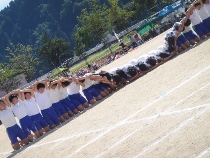 全校で綱引きの練習をしました。本番さながらの練習で力がはいりました。