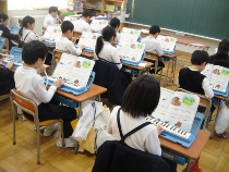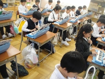 二年生のクラスで音楽の研究授業を行いました。全身でリズムを表現した楽しい勉強でした。