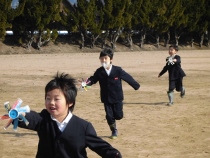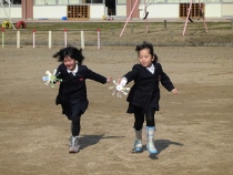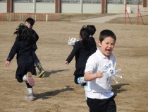 生活科の時間にかざぐるまを作りました。すっかり雪がなくなった運動場で回してみました。風は冷たかったけど、とても楽しかったです。