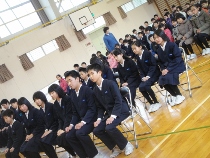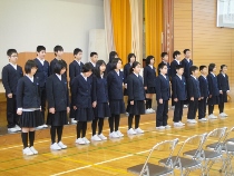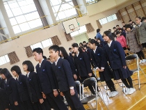 明後日が卒業式だということで、今日、合同練習を行いました。卒業生と在校生が全体の流れをつかむことが目的です。わずか15分程度の練習でしたが、全体の流れがよくわかったのではないかと思います。