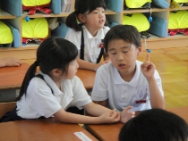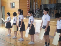 1年生は国語に時間に勉強した「おむすびころりん」のお話を発表しました。お客さんは、2年生と先生方でした。さらに、朝読書ボランティアの藤本さんと山内さんも応援してくれました。とても素晴らしい発表でしたので、たくさんの感想がありました。