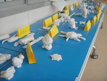 粘土でいろいろ動物を作りました。すてきな動物園ができました。