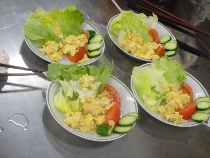 六年生は、調理実習で野菜サラダとスクランブルエッグを作りました。どの班もとても手際よく作業をしていました。中には、料理ができあがると同時に片付けが終わっている班もありました。素晴らしいです。