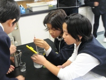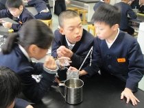 理科の時間に水を冷やしたときの変化を調べました。温度計の目盛りを見ながら試験管の水を観察しました。実験はうまくできたかな?
