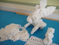 絵本「ともだちや」の好きな場面を粘土で作りました。今にも動き出しそうな作品ばかりでした。