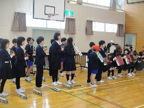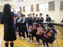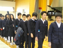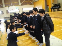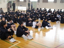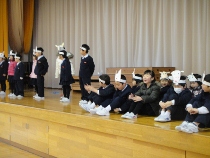 六年生が卒業発表会の練習をしていました。本番まであとわずかということで、体育館には緊張感が漂っていました。