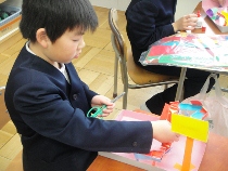 生活科の時間にかざぐるまを作りました。すっかり雪がなくなった運動場で回してみました。風は冷たかったけど、とても楽しかったです。