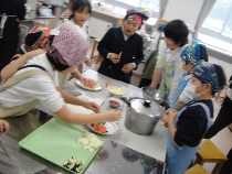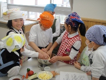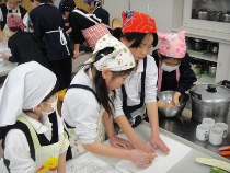 今日の給食は、たてわりで食べました。いつもとは違うメンバーでの給食は、いつもと少し違った味がしたのではないかと思います。