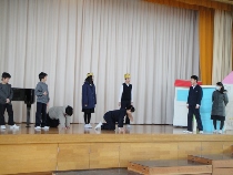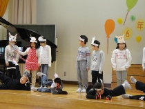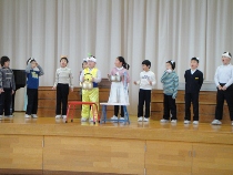 六年生を送る会がありました。それぞれの学年から楽しい発表がありました。どの学年もたくさん練習したことがよくわかりました。