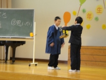 1年生は、こころのこもった招待状の作成から始まり、歓迎の出し物の練習を続けてきました。今日が本番です。