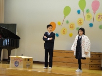 午前中の「六年生を送る会」に続き、午後からは六年生による「卒業発表会」が行われました。六年生は、今日の発表を前に、保護者の皆さんに感謝の気持ちを伝えようと、様々な工夫をしました。きっと、満足していただけたと思います。卒業まであとしばらくです。一日一日を大切に過ごします。