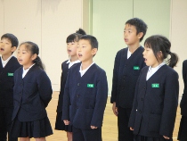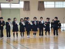 新一年生23名が少し緊張して入学式が始まりました。在校生は、体育館中に響く元気な声で、新入生を迎えました。