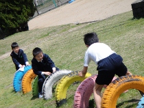 新学期が始まってからの1週間は寒い日が続き、なかなか外で遊べませんでした。今日は待ちに待った晴天の昼休み、運動場は子どもたちの歓声が溢れていました。