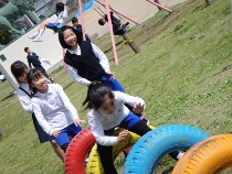 式典の後、たくさんの催し物へ楽しく参加しました。また、広い公園の中で自然を満喫しながら活発に走り回ったおかげで、帰りのバスの中ではぐっすりと眠りました。