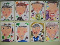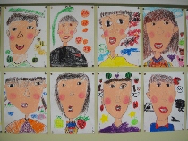 図工の時間に自分の顔を描きました。楽しさや嬉しさがあふれ出ていて、とてもいい表情になりました。