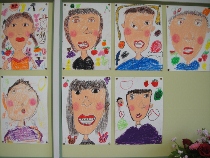 図工の時間にコンテを使って自画像を描きました。似ているかな?似ていないかな?