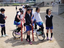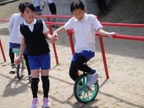 昼休みに体育委員会の皆さんが、一輪車を整備して、運動場へ出してくれました。この時を今か今かと待っていたようです。あっという間に準備した一輪車は、運動場で大活躍でした。