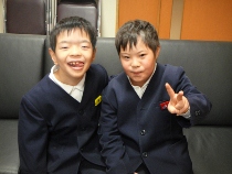 なかよし学級の二人は、毎朝、職員室の先生方へ挨拶に来てくれます。職員室での挨拶が終わると、次は校長室です。二人の挨拶で職員室の一日が爽やかに始まります。