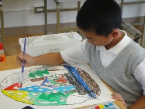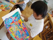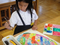 2年生は、図工の時間に不思議な卵の絵を描きました。大きな画用紙いっぱいに描かれたカラフルな卵が割れて、中から素敵な世界が飛び出してくる予定です。仕上がりが楽しみです。