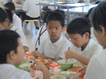 毎日、昼休みにはリレーの練習をしています。高学年が低学年に対して親切な指導をしています。少しずつ上達してきています。